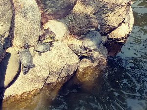 over a duck pond – filled with fish and miniature turtles – to enter the shrine. The calm grounds and picturesque landscapes transported us to a long forgotten era in Japanese history. We learnt that the main shrine hall was a designated national treasure and the sacred trees inside the shrine complex were over 1000 years old.