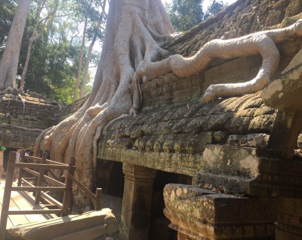 I spend some time in front of the east entrance of the central enclosure – engulfed by root formations nicknamed ‘Crocodile Tree’ – immersing in the unique harmonious coexistence of the tree and the man-made legacy.