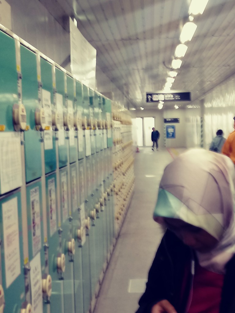 Soon we were on our way to Hiroshima. On reaching the station, we headed towards the locker room, following the ‘coin locker’ sign. We chose a single medium locker, put all our purchases in it, and closed the door. After inserting four 100 yen coins in the slot, we turned the key to the left and pulled it out. The key was kept away safely for future use.