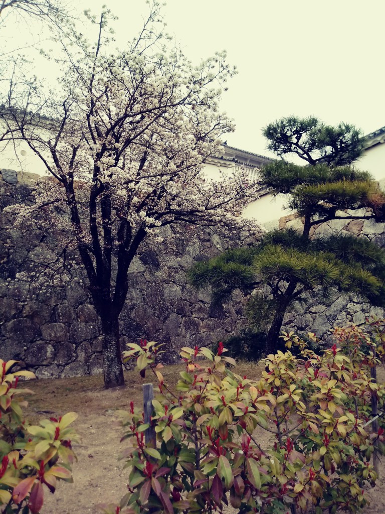 Himeji-jo has remained intact since the time of its construction which began in the 1300s. We were amazed to learn that it took 200 years to complete the work. The castle, as it stands today, made up of over 80 buildings spread across walled enclosures connected by a series of gates and pathways, is a national treasure as well as a UNESCO World Heritage site. Luckily we found a cherry tree in full blossom in the courtyard in front of the main entrance.