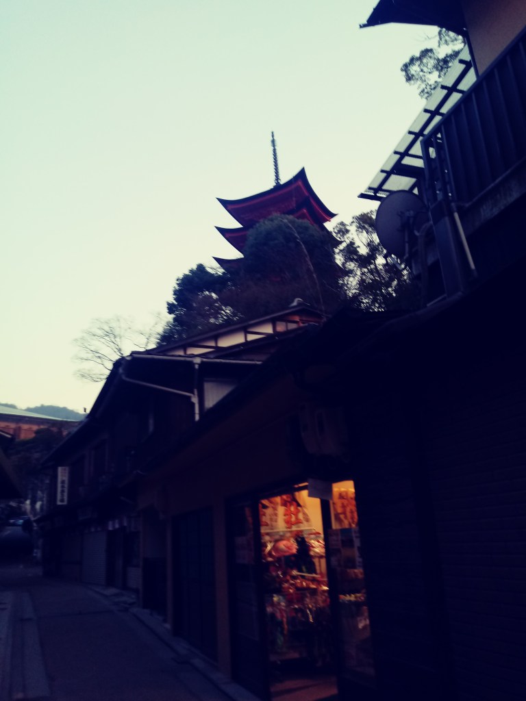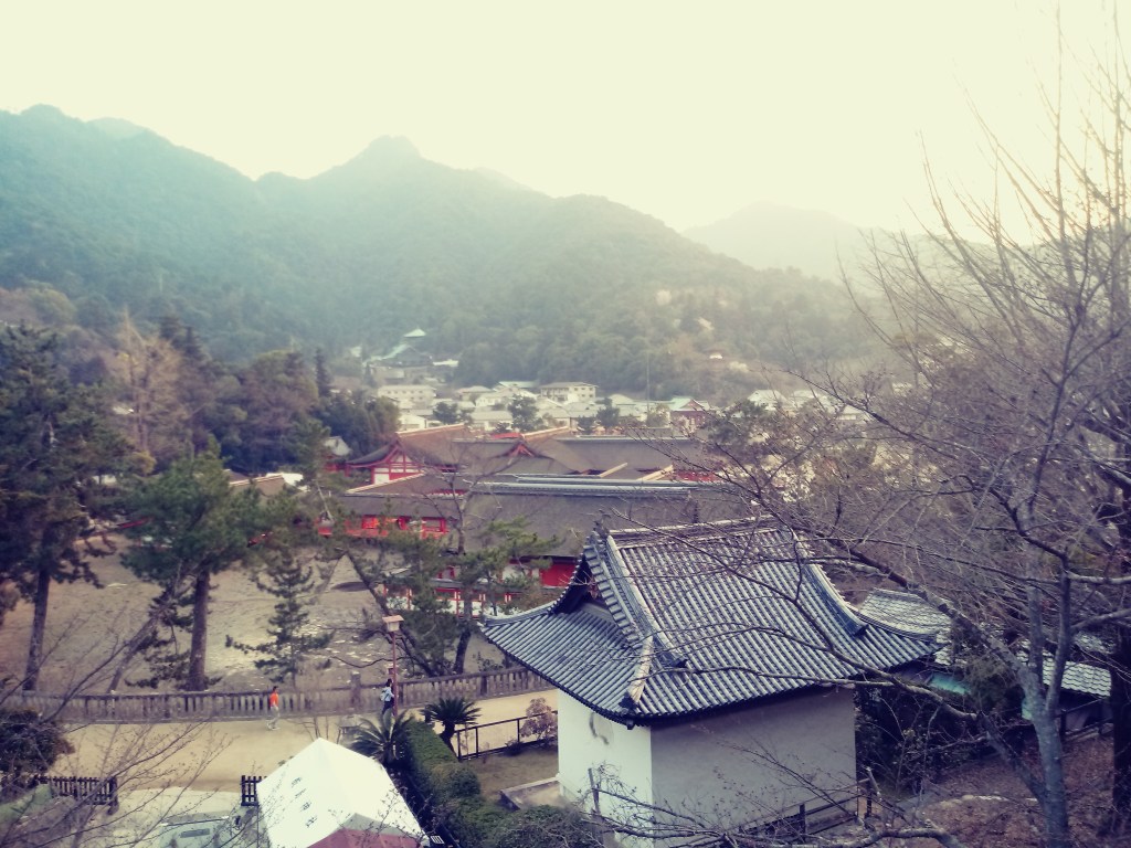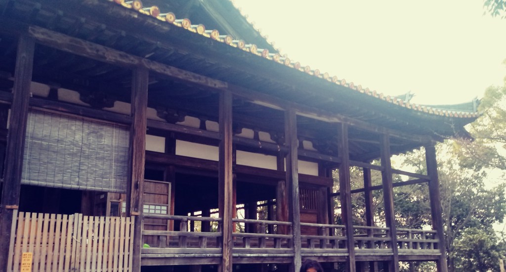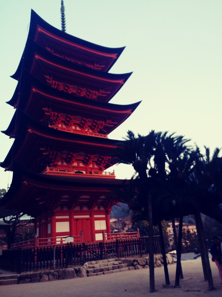 After a quick tour of the shrine, we started for Senjokaku (literally meaning pavilion of 1000 mats), a Shinto shrine located on a small hill close to Itsukushima Shrine. Although the shrine remains unfinished to this day – as General Toyotomi Hideyoshi (who also built Osaka Castle), who commissioned it to pray for the souls of his fallen soldiers, died before its completion – it is still worth a visit. We loved the climb to the top of the hill as a stag decided to follow us all the way up, begging for attention, and, of course, some food. The view of the neat rooftops of the Itsukushima shrine complex looked wonderful from the top of the hillock!