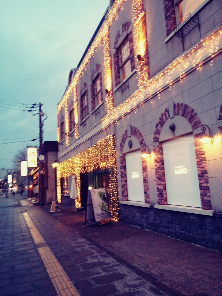 From Sakaimachi-hondori, I took a right and continued walking on Minatomachi street. Five minutes later, I was by the Otaru canal. Although it was not the best season for taking a stroll along the promenade, it was still worth it. The waterway was lined with ageing stone warehouses which had been converted into shops and restaurants. The promenade, lit up with gas lamps illuminating the water’s surface, radiated an old world feel.