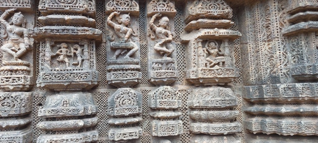 Unfortunately, the main temple no longer exists and is replaced by a heap of ruins. The original temple had a main sanctum sanctorum that fell in 1837. The audience hall, which still stands, is the principal structure in the surviving ruins. The surrounding shrines at the site have niches holding Hindu deities. The temple structures showcase intricate artwork and themes, including erotic scenes and other themes depicting the day-to-day life of the Sun God and his royal entourage.