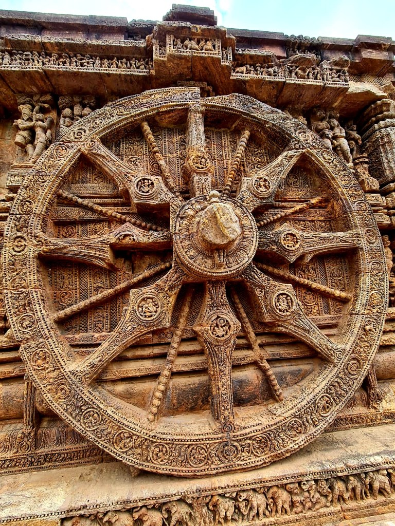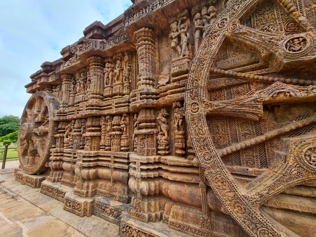 Dedicated to the Hindu Sun God, Surya Deva, this 13th-century stone temple was built during the reign of the Eastern Ganga King Narsimhadeva-1. It was shaped like a giant ornamented chariot drawn by seven horses symbolizing the Sun God’s chariot. According to the Rig Veda, an ancient Indian collection of Vedic texts in Sanskrit, Surya Deva travels across the sky in a golden chariot driven by seven horses. 24 elaborately carved stone wheels, almost 12 feet in diameter, adorn the perimeter of the main structure. These 12 pairs of wheels correspond to the 12 months of the Hindu calendar.